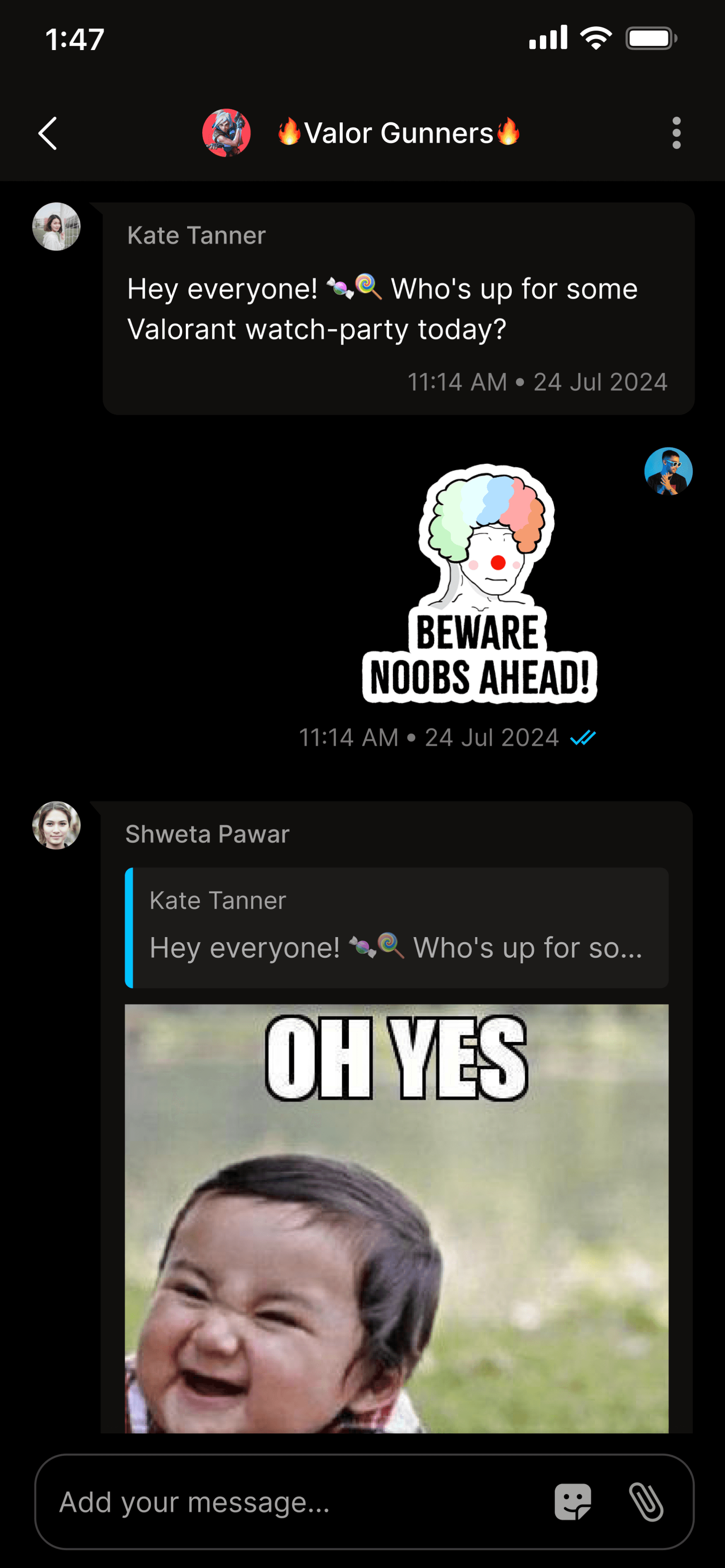 I followed familiar social media UX patterns for instant user familiarity and quick interaction. The layout uses a clear hierarchy—user, content, then actions—for easy scanning. To add a gaming touch, I included custom reactions like OG, OP, BUFF, and LOVE, making the experience more relatable and fun. The format stays consistent and scalable across various content types.